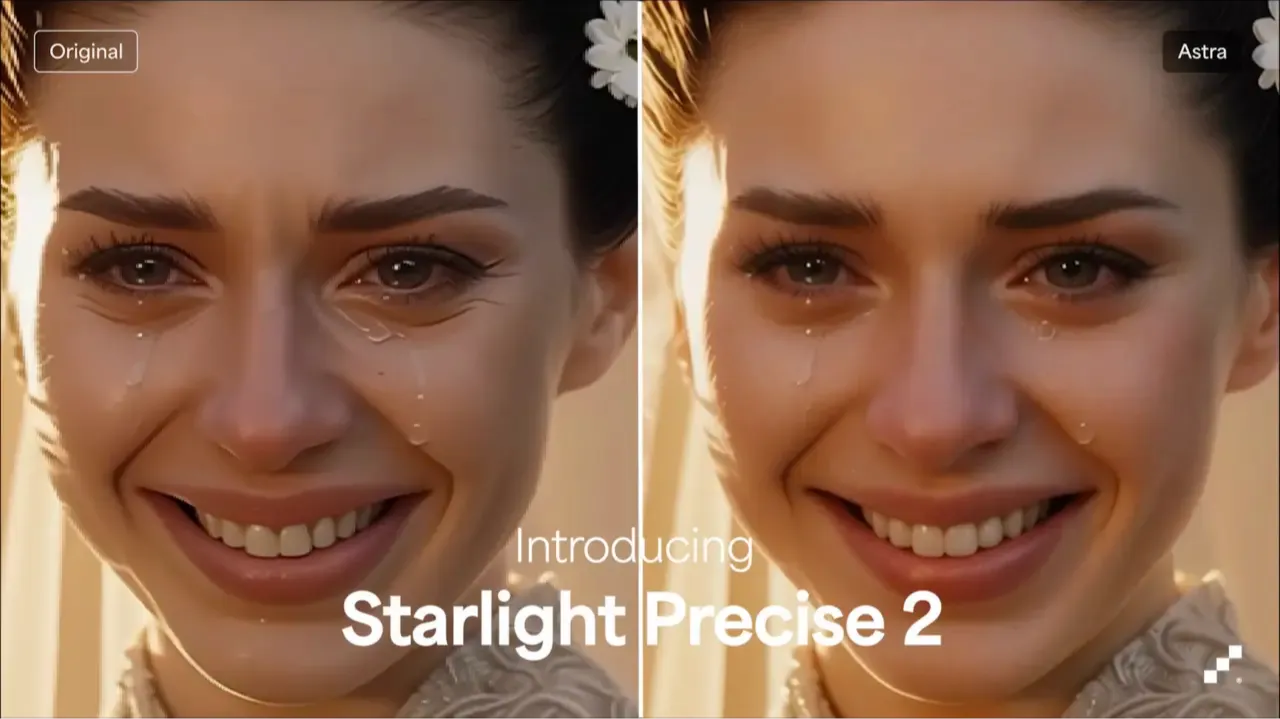 Topaz Labs released Starlight Precise 2 model in Astra. Specifically engineered for people and faces, this update eliminates that uncanny "mannequin" sheen, restoring natural skin textures and fine details that other upscalers often smooth away. It excels at preserving organic grain structure even in low-light shots, preventing that overly clean "digital smear" that ruins cinematic immersion. This makes it an essential tool for narrative filmmakers who need to rescue soft footage without compromising the authenticity of the actor's performance. If you want your upscaled characters to look like living, breathing humans rather than video game assets, this model delivers next-gen realism that finally bridges the gap.
